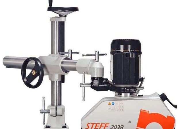 Powerfeeder, 3-Roller New Maggi/Steff Model #2038-3 3-Roller, 8-Speed Powerfeeder with Universal Stand, 230 volt, 3-phase machine. Add $100.00 for Single Phase. Roller/Belt Vertical Range of Motion 1 inch. Electrostatic paint finish. Sintered case hardened gears. Bronze alloy main drive gear. Natural rubber, 60 shore hardness rollers/belts. (Polyurethane belts/rollers and steel rollers also available). Calibrated spring support for roller adherence.