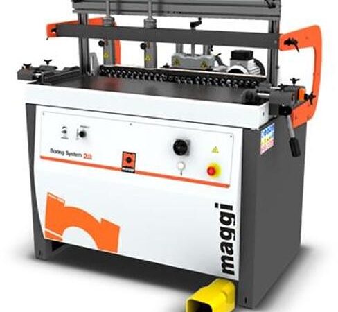 $249 Flat Rate Shipping in the Continental United States The Maggi System 29 Boring Machine provides a 29 spindle 32 mm universal drilling solution, with horizontal and vertical boring capabilities and pneumatic tilting of the boring unit with locking points from 0 to 90 degrees for quick set-up at any angle. Accurate positioning of the boring unit to the table with ย digital readout. 0 to 2.5″ adjustable drilling depth with patented spiral setting device. (3) patented quick release material clamps with auto-setting to firmly hold material to table. Powerful 2 HP motor. 47″ x 13″ cast iron table. Side fences with mechanical digital readout for quick and accurate setting. 120″ line boring fence with (4) stops. Foot actuated pneumatic clamps and drill cycle.ย Includes: Magnetic Starter with overload protection and (29) quick change chucks.ย Dust Outlet: 3″ Voltage: 230V 3-Phase Net weight: 705 lbs. Dimensions: 59.3″ x 37.8″ x 50″ Tall. Crated Dimensions: 59.8″ x 37.4″ x 40.5″ Tall. Crated Weight: 815 lbs.