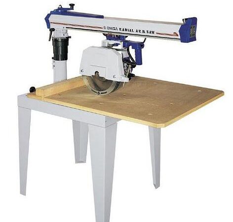 Radial Arm Saw, 14″ New Omga Model #RN900 Heavy Duty 14″ Radial Arm Saw machine, 5HP Motor, 230 volt, 3-phase machine, 35-5/16″ Cross Cut Capacity, 1″ Bore Size, Positive Miter Stops at 45-0-45