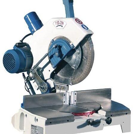 Miter Chop Saw New Omga Model #T50-350 Heavy Duty Miter Chop Saw Machine, 3HP, 230 volt, 3-phase machine, Positive stops at 45, 30, 22 1/2, 15 and 10 degrees on both sides of the rotation and an independently fine tunable one at 90 degrees