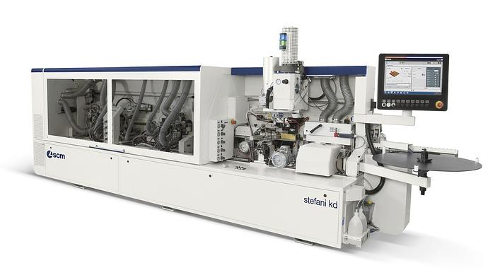 Stefani KD/FRT – Single Sided Automatic Edgebander Automatic single sided edgebander designed to be used for edgebanding straight vertical profiles with coiled material (veneer and PVC) and with strips (high-pressure laminate and solid wood) with a maximum thickness of 12mm. Machine Base The machine base is a rigid, ribbed steel structure and is designed to provide maximum support for the working units. The ribs provide stability and, at the same time, provide openings in the base to facilitate removal of the chips/dust. Capacities And Speed Edgebanding thickness: .4mm – 12mm (.016-1/2”) Guillotine capacity: 3mm Feed speed: 33-66 ft/min. Panel height: 3/8” min – 2 3/8” max Minimum panel length: 5 1/2” Minimum panel width: 2” Minimum distance between panels: 24” PC 21” Controller The Stefani KDR comes equipped with the Maestro Pro Edge controller, a 21” industrial multi touch screen. Comes standard with a Windows operating system. Capable of storing an unlimited number of programs. Monitors statistical data, as well perform diagnostic functions and program functions. 1920 x1080 resolution, intuitive interface. Monitors the number of panels processed, the amount of material applied, the number of hours run, the distance the feed track has turned, etc. Maintenance schedules are monitored for various stations throughout the machine. Swivels 270 degrees for easy access. Teamviewer for remote diagnostics is standard Lighted Sound Enclosure With Acoustical Hoods Machine comes standard with a lighted sound enclosure making it easier for the operator to perform his daily functions. It is also equipped with an acoustical sound enclosure that covers the entire machine and reduces the noise level. Electronic Positioning Of The Top Pressure Beam All operating units raise and lower simultaneously when the pressure beam is adjusted. No adjustment is required for the glue roller when changing panel thickness. The pressure beam has two rows of staggered pressure rollers with steel bearings. The height of the pressure beam is electronically programmable through the controller. Anti-Adhesive The machine comes equipped with an anti-adhesive unit positioned prior to the pre milling unit. It prevents the buildup of glue on the top and bottom of the panel. The unit comes with two independent nozzles and a tank of anti-adhesive liquid “QMS” Glue Station Automatically supplies the glue pot with the proper amount of glue on demand. The level of the glue in the glue pot is monitored by a sensor insuring the proper level. The pot is smaller, the glue is turned over faster as a result. The hopper holds in excess of 10 lbs. of glue and has sight glass to see what the level is. Teflon coated glue pot to facilitate glue changeover. Warm up time is approximately eight to ten minutes. An additional quick disconnect glue pot is included with the machine. SGP Glue Pot with CNC Control of the Glue Quick heat up time due to the small glue pot. Reverse rotation of the glue roller for the application of solid wood. Double Thermo Regulation for easy use of both EVA and PUR glue. Color change and glue pot cleaning are able to be completed in minutes, as opposed to hours. CNC control of the amount of glue being applied, specific to the program, is standard. Through the controller the operator can change the amount of glue being applied depending on the substrate of the panel. The purging process is CNC controlled as well when changing glue colors or going from EVA to PUR glue. There are a total of four pressure rollers for pressing the banding to the workpiece edge. The first roller is powered and applies pressure pneumatically. It is also Teflon coated to prevent the banding material from slipping. The three idle rollers have opposing one-degree tilt to provide extra pressure along the top and bottom edge. The unit comes standard with a servo driven motor for positioning. This eliminates the need for the operator to manually adjust the unit and helps reduce changeover time. The pressure section is also equipped with pneumatic jumping so the unit activates exactly on the leading/trailing edges. Standard is the edge detecting sensor that will shut down the feedtrack when there is no material present to be applied. Equipped with I-Glue, locks the glue roller in place at the end of the panel eliminating any excess glue. Infeed Fence The infeed fence has a mechanical digital indicator to position the fence and determine the stock removal. It is also equipped with a pneumatic panel spacing device to prevent the operator from feeding the panels to close to one another Air Cushion Table at Machine Entry Air cushion table located at machine infeed to help facilitate the loading of panels, especially panels of large dimensions. It includes the extension of the machine entry infeed fence. It is not possible to have the narrow feed option on the machine. Table dimensions are 1,600mm x 600mm. “RT-E” Pre-Milling Station: To rectify/clean panels already sized and squared before the edge is applied. The unit is composed of two high frequency motors with jumping action controlled through the PLC. The cutting heads are adjustable vertically. The unit is equipped with copying devices which guarantee that material removal is consistent on long or slightly out-of-square panels. 64mm tall diamond premill cutters with replaceable inserts come standard. “K-SEL 2” End Trimming Station This unit is composed of two independent .50 hp motors mounted on THK guides. End trim utilizes a draw cut system for reduced blade projection on thick panels. The unit comes standard with automatic tilting of the unit from the control panel with two preset positions. When operating in conjunction with the corner rounding station the unit is equipped with two position pneumatics to leave the material long, thus allowing the corner rounding unit to have a seamless finish. Flush Trimming Station: Two independent 1.0 hp motors operating at 12