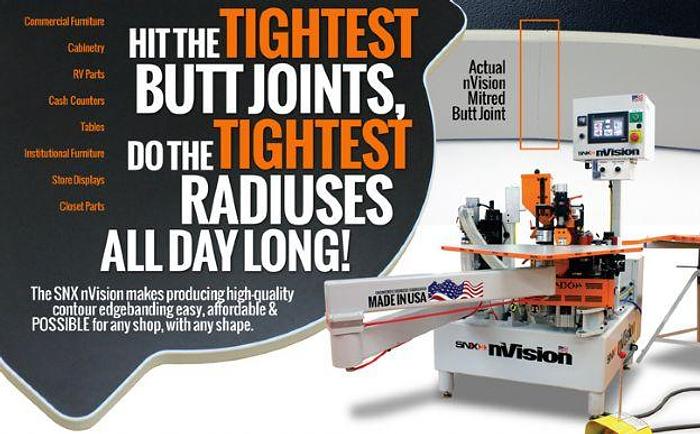Contour Edgebander NEW SNX Technologies Model #nVision Heavy Duty Contour Edgebander machine, Digital Control Unit, Workpiece Holddown, Edge Coil Magazine, Gluing Station, Top & Bottom Trim Station, Easily Switch between 1, 2, and 3mm edgebanding