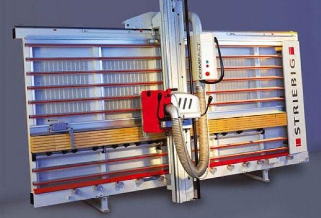 • One-piece fully welded frame, able to floor or wall-mount. • 10’2” x 5’5” cut capacity; 2-3/8” cut depth • Heavy-duty support rollers with integral panel stop • Full-length mid-shelf with adjustable spacing for aluminum fingers and built-in wood small parts support area • Auto, upward-shifting aluminum support grid w/plastic laths • NEW highly efficient dust system, enclosed in cable chain • 5-1/4hp, 208-480V, 3 motor with electric brake • 250mm carbide saw blade for 2-3/8” depth of cut – Specially designed measuring flip stop for use with small parts • Template bar accepts optional stops for common rip cuts • Optional true split-blade scoring saw available (& retrottable) • Optional locking rollers, foot-pedal operated (factory ordered) Cut capacities: 10’2″ W x 5’5″ H; depth 2-3/8″ (60mm) Weight (approx.): 1100 lbs. (net), 1600 lbs. (gross) Main Saw Blade: 250 mm dia., 30 mm bore with (2) 7 mm pin holes (42 mm circle) Scoring Saw Blade: (option) 80 mm dia., 20 mm bore split-blade type w/shims Electrical: 3 phase, 220V/20 Amp or 440V/10 Amp service *208V and 280V motors available Dust collection: 1000 cfm, 100 (x2)mm connections (second connection at bottom right corner of frame is optional and hose is not provided.)